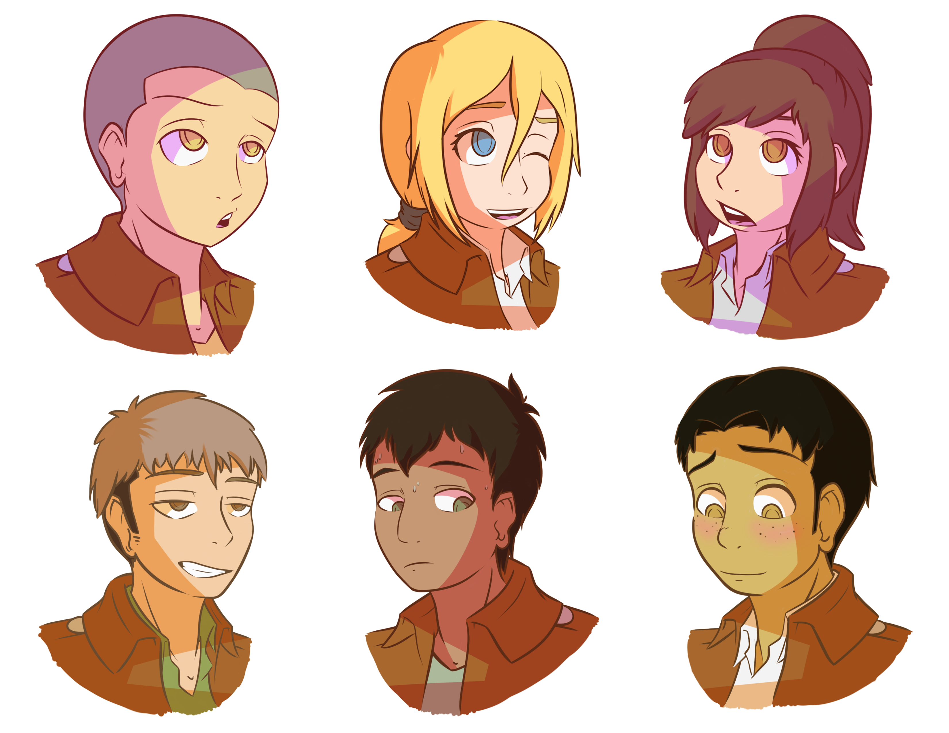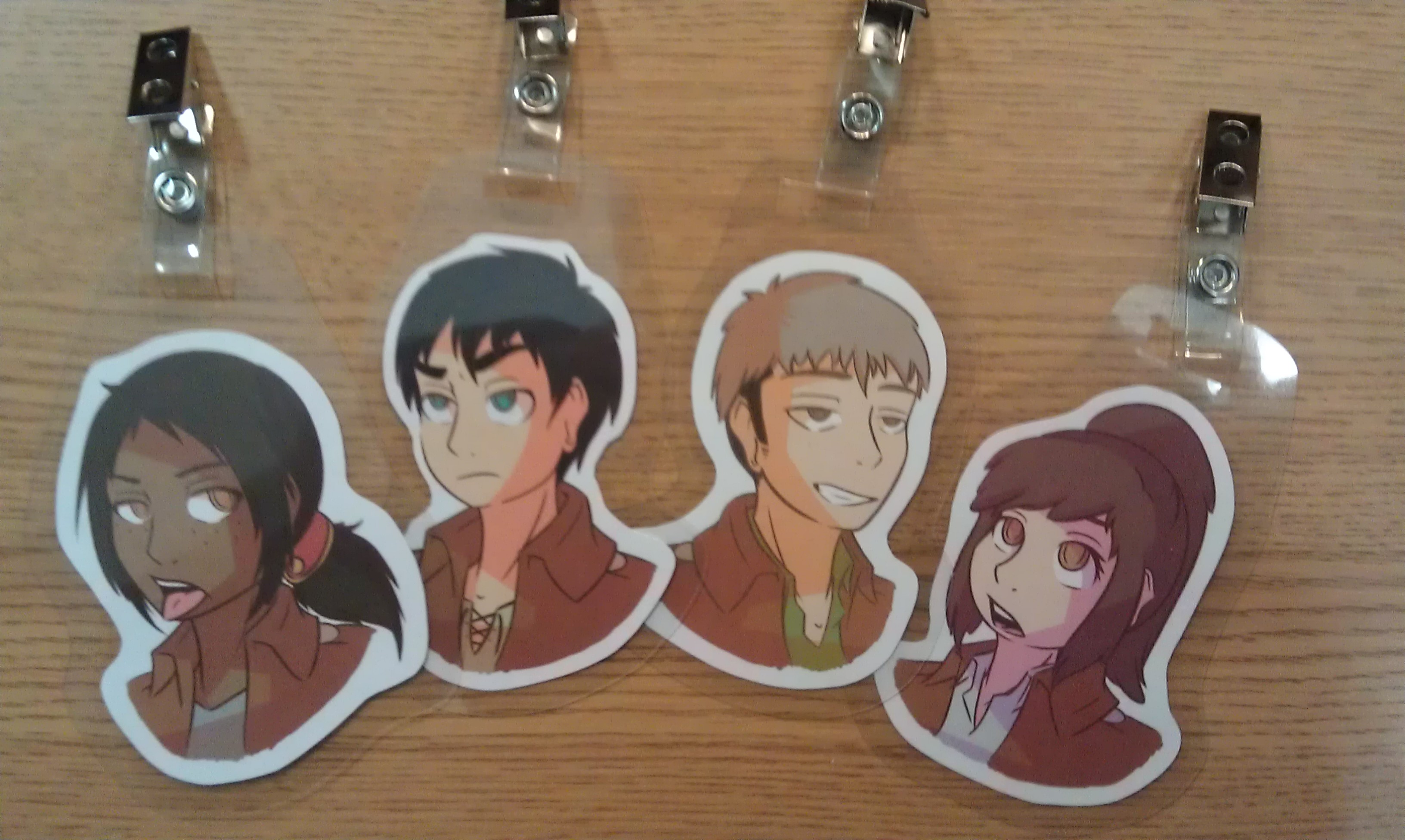 Indivitual Attack on Titan badges of each member from the 104th squad.