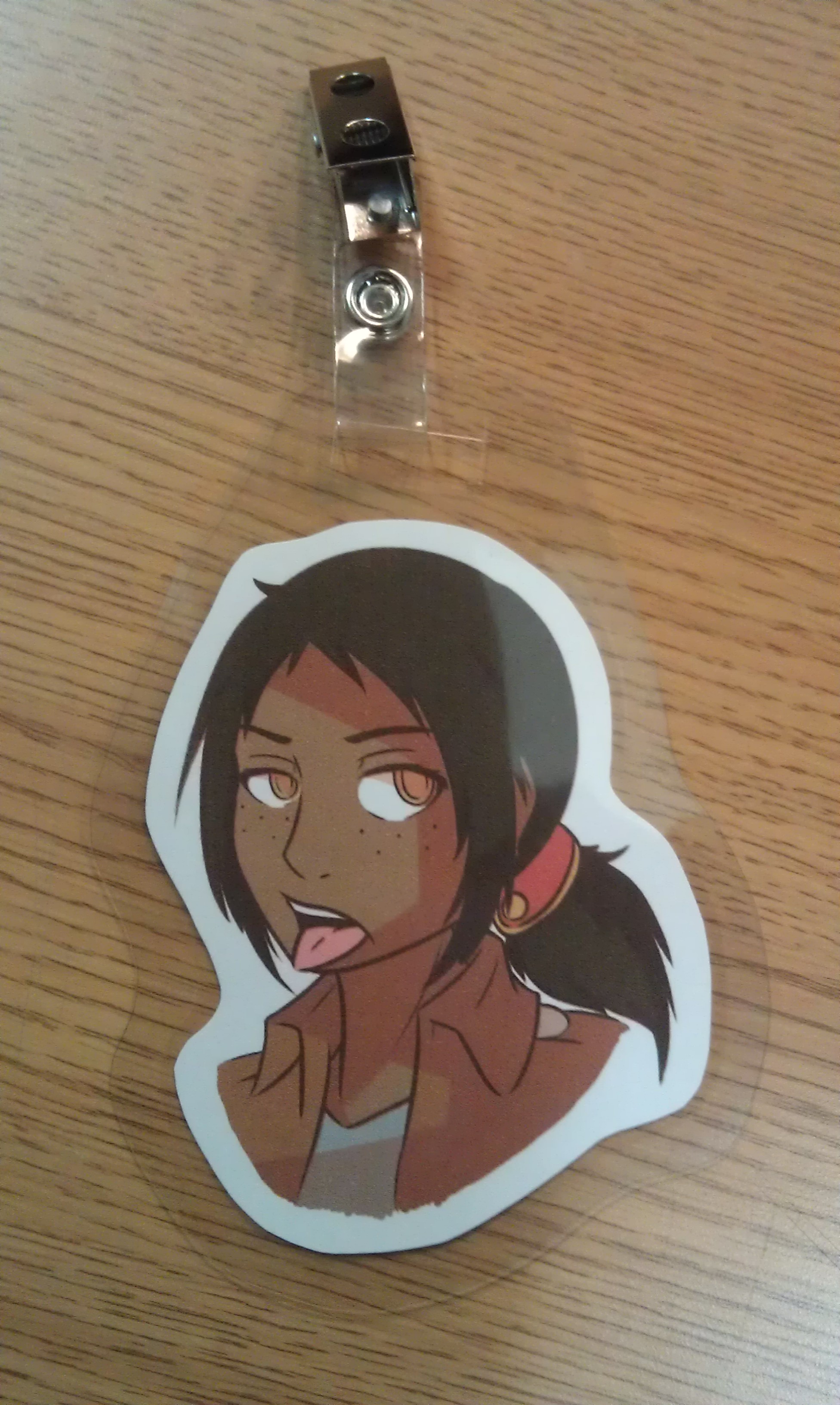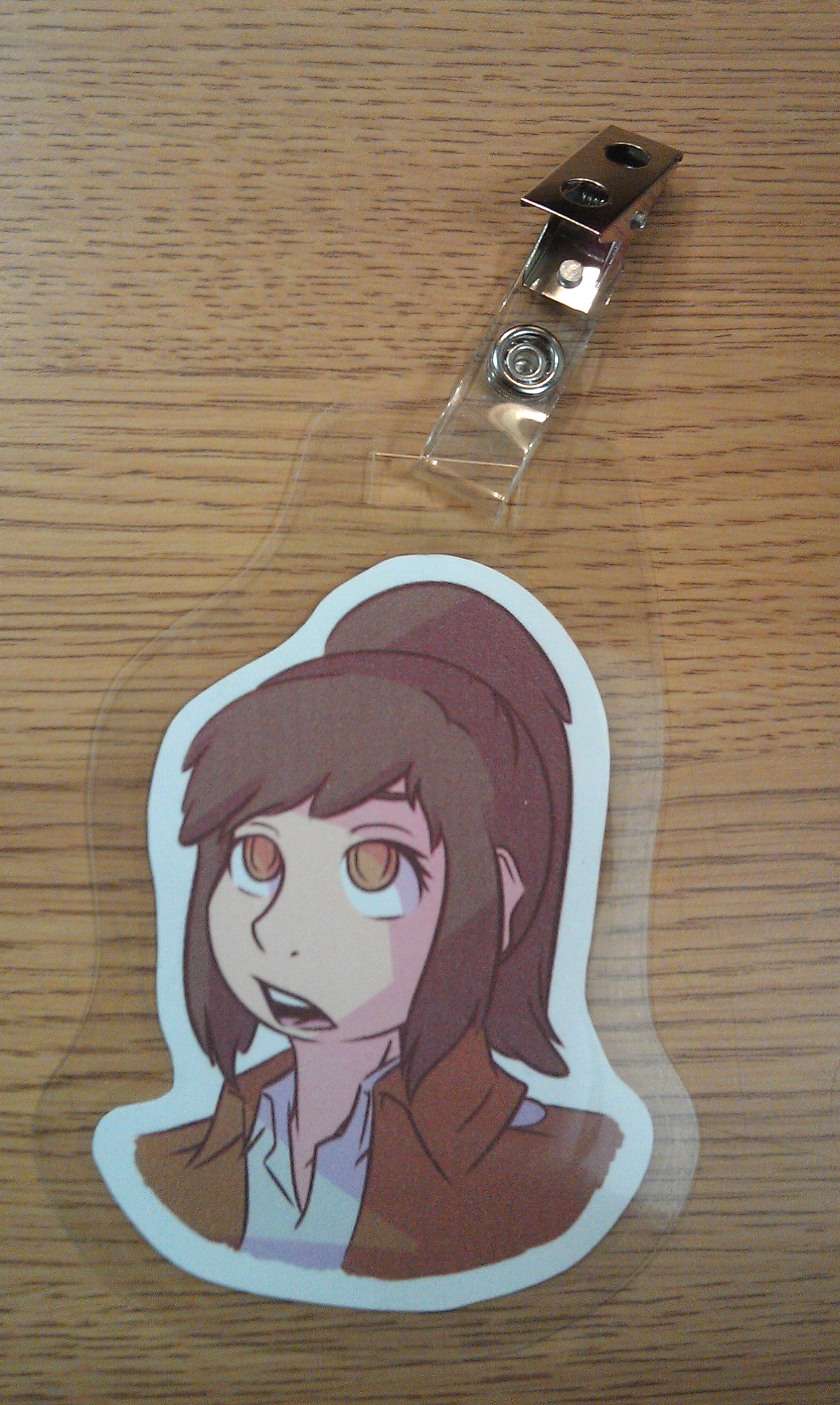 Each badge is printed on cardstock, cut by hand, then laminated and clipped.