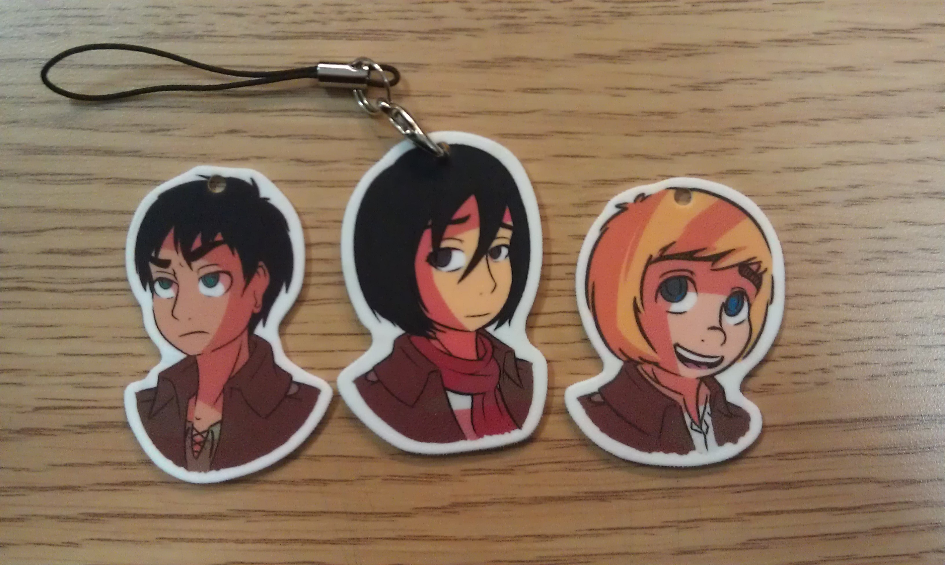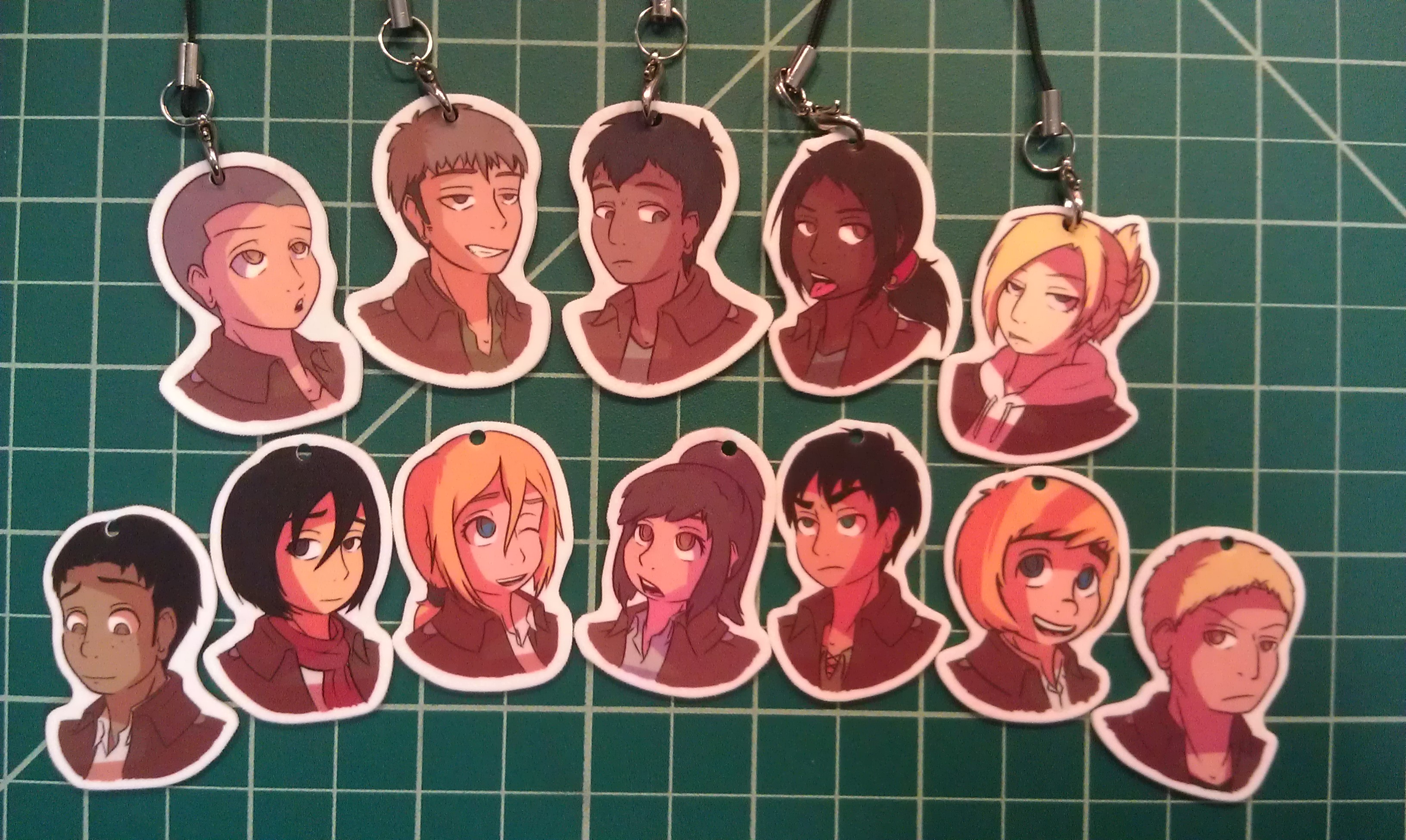 Individual Attack on Titan hard plastic keychains/charms of each member from the 104th squad.